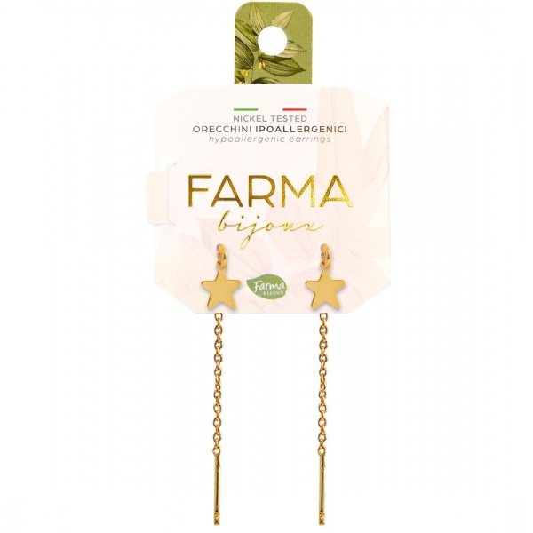 Υποαλλεργικά σκουλαρίκια αλυσίδες επιχρυσωμένες με αστέρια 800mm της συλλογής Giada Collection από τη Farma Bijoux. Δημιουργήθηκαν με σεβασμό στο περιβάλλον και την επιδερμίδα. Τα σκουλαρίκια της Farma Bijoux κατασκευάζονται στην Ιταλία ενώ συσκευάζονται με πιστοποιημένο χαρτί FSC. Η ποιότητα η ομορφιά και η ασφάλεια είναι οι λέξεις κλειδιά που προσδιορίζουν την φιλοσοφία της Farma Bijoux! 100% Κατασκευασμένα στην Ιταλία.