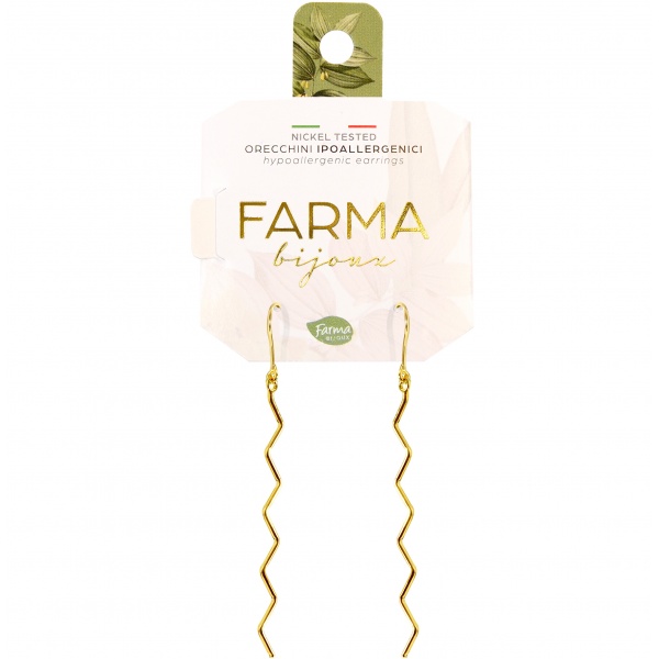 Υποαλλεργικά σκουλαρίκια επιχρυσωμένα ζικ ζακ 65mm της συλλογής Amelia Collection από τη Farma Bijoux. Δημιουργήθηκαν με σεβασμό στο περιβάλλον και την επιδερμίδα. Τα σκουλαρίκια της Farma Bijoux κατασκευάζονται στην Ιταλία ενώ συσκευάζονται με πιστοποιημένο χαρτί FSC. Η ποιότητα η ομορφιά και η ασφάλεια είναι οι λέξεις κλειδιά που προσδιορίζουν την φιλοσοφία της Farma Bijoux! 100% Κατασκευασμένα στην Ιταλία.