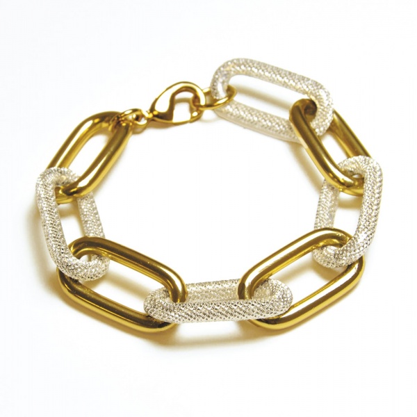 Υποαλλεργικό Βραχιόλι Αλυσίδα Χρυσό-Ασήμι της συλλογής Zoe Glamour Collection από τη Farma Bijoux. Δημιουργήθηκαν με σεβασμό στο περιβάλλον και την επιδερμίδα. Τα κοσμήματα της Farma Bijoux κατασκευάζονται στην Ιταλία ενώ συσκευάζονται με πιστοποιημένο χαρτί FSC.