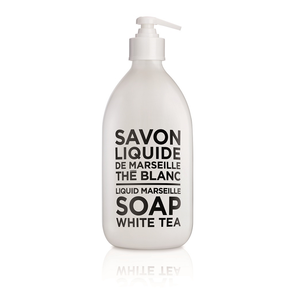 Υγρό σαπούνι Μασσαλίας 500ml σε γυάλινη, λευκή συσκευασία με αντλία. Εμπλουτισμένο με φυτικά έλαια, καθαρίζει, προσφέρει βαθιά ενυδάτωση και είναι κατάλληλο για όλους τους τύπους δέρματος. Ένα άρωμα που δημιουργήθηκε στο Γκρας από το συνδυασμό ζουμερού κίτρου με νότες από λευκό τσάι.