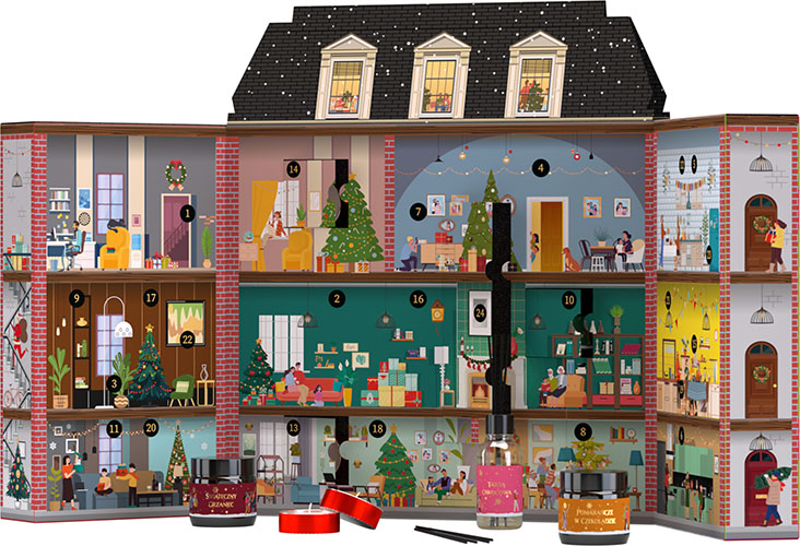 Christmas Advent calendar soy candles 30 ml 11 pcs + tealight 11 pcs + matches + diffuser