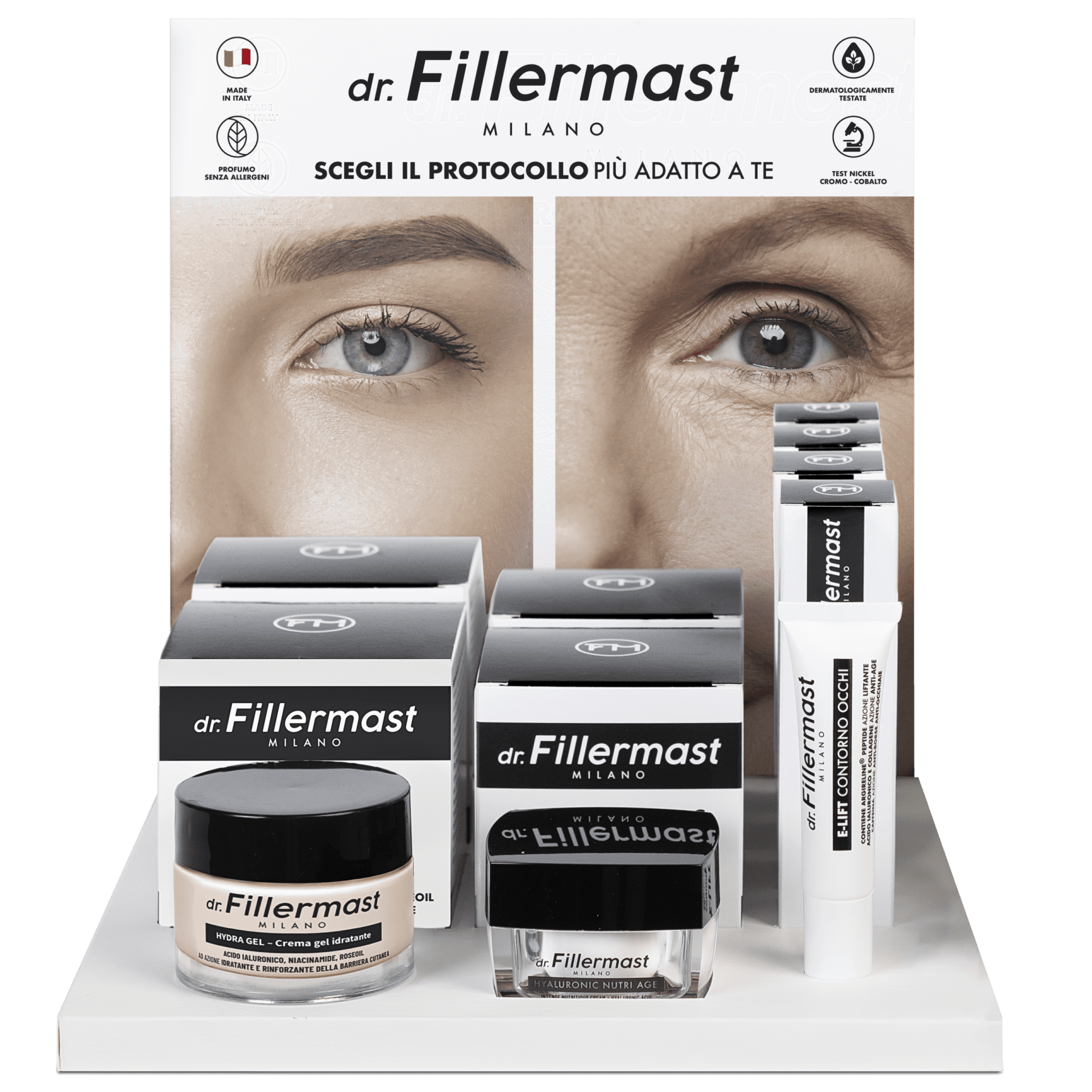 Η Dr. Fillermast είναι μια ιταλική σειρά δερμοκαλλυντικών αποκλειστικά για φαρμακεια, σχεδιασμένη για ολοκληρωμένη φροντίδα της επιδερμίδας με έμφαση στην ενυδάτωση, την αντιγήρανση και τη βελτίωση της υφής του δέρματος. Η σειρά περιλαμβάνει κρέμες, ορούς, gels, προϊόντα καθαρισμού και εξειδικευμένες λύσεις περιποίησης, κατάλληλες για καθημερινή χρήση. Όλα τα προϊόντα είναι δερματολογικά ελεγμένα, κατάλληλα για ευαίσθητες επιδερμίδες και βασίζονται σε δραστικά συστατικά υψηλής απόδοσης, όπως υαλουρονικό οξύ, πεπτίδια και σύγχρονα ενεργά μόρια.