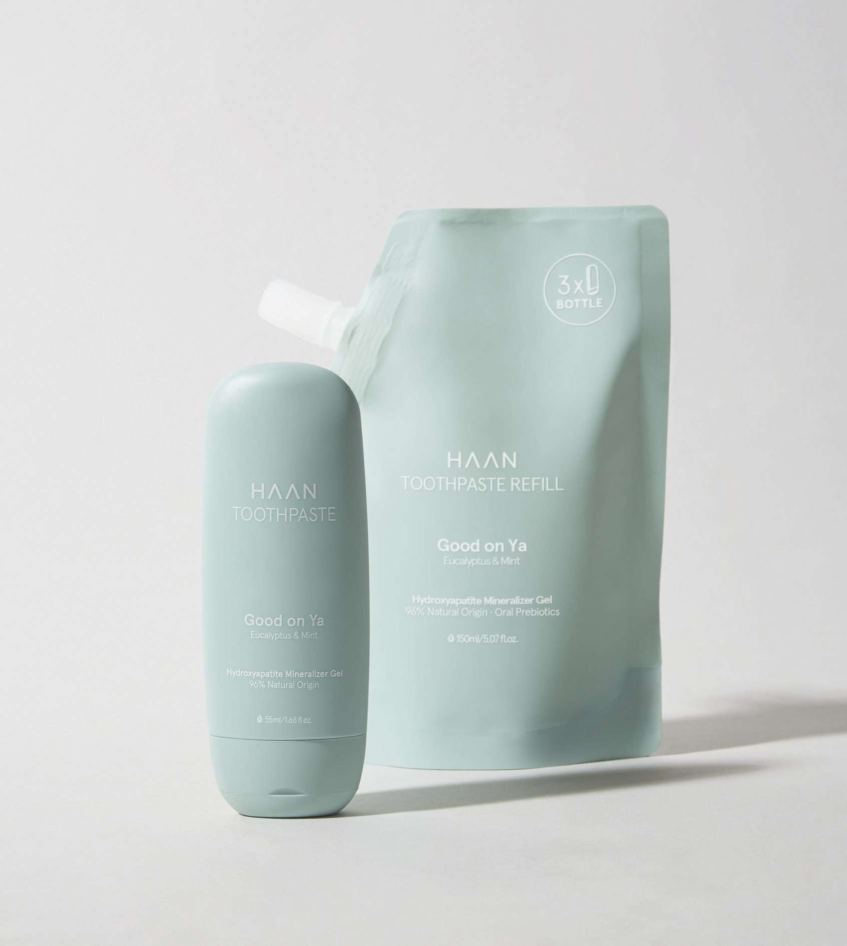 With superfood ingredients for your gums, feel the freshness of your favorite apple & mint flavor for longer. Get your Apple a Day toothpaste in a refillable bottle and an x3 refill pouch. Less plastic, more lifetime! Refill it!
