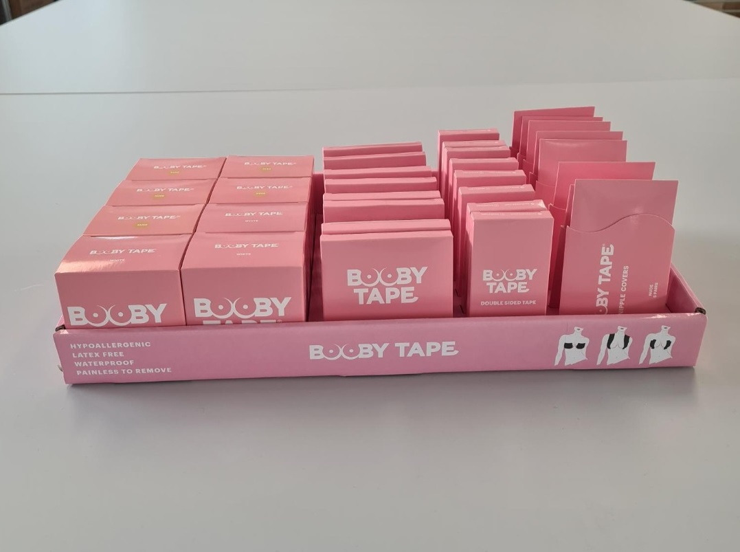 Η βιτρίνα μπορεί να χωρέσει: 8 Booby Tapes (black/white/nude/brown), 8 nipple covers, 8 silicone nipple covers, 8 double sided tapes. Διατίθεται δωρεάν με την ταυτόχρονη αγορά όλων των άνωθι προϊόντων. + Δώρο Ένα tester Booby Tape & ένα nipple cover.